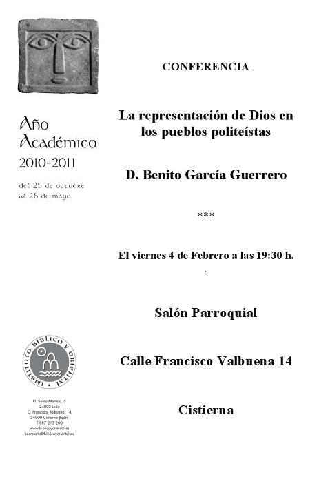 AGENDA IBO del mes de febrero. El viernes, 4 de febrero, Benito García Guerrero ofrece la tercera conferencia del ciclo «Historia de las religiones» en Cistierna: