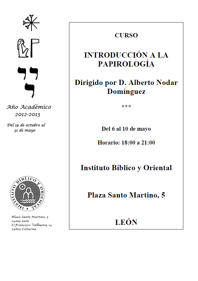 Información y matrícula: personándose en la secretaría del IBO, en la Plaza Santo Martino, 5 (León), o vía email escribiendo a secretaria[at]biblicoyoriental.es