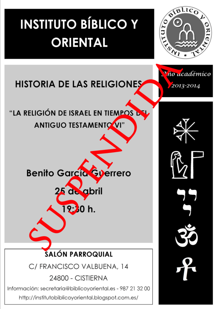Lamentamos comunicarles que la conferencia del próximo día 25 de abril, viernes, que iba a impartir Benito García Guerrero en Cistierna ha sido suspendida debido a problemas de agenda del ponente. Avisaremos de nuevo en cuanto sepamos la fecha en que se recuperará la actividad.