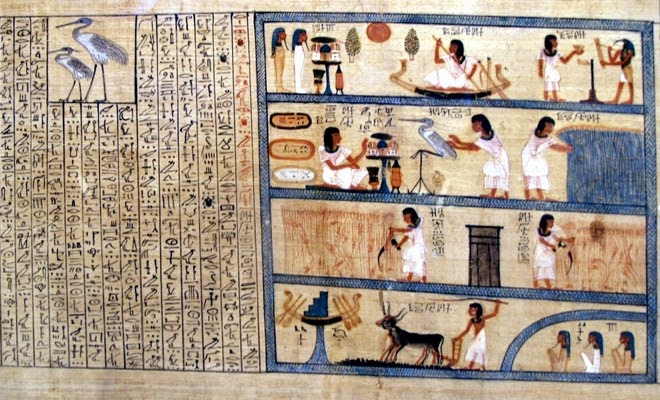 El propio entorno geográfico del Valle del Nilo condicionó la reflexión teológica sobre la apariencia del paisaje del Más Allá. Para los antiguos egipcios era inconcebible que su Inframundo careciera de un largo río por el que navegar. Al igual que en su valle estaba el Nilo, en el Más Allá debía de haber otro gran río por el que viajar y deambular. En una cultura en la que no existían los puentes y todo el trasbordo por el río se realizaba en barcas, era necesario que en el Libro de los Muertos se proporcionaran las fórmulas mágicas necesarias para poder conseguir un bote con el que poder moverse. Así lo encontramos en las sentencias 98 y 99. En ocasiones las tumbas ya venían dotadas de maquetas de estas barcas para que el difunto sólo con el texto mágico las hiciera “revivir” en el Más Allá. Contamos con una buena muestra de estas barcas en miniatura, por ejemplo, en la tumba de Tutankhamón.