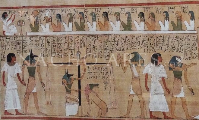 Ésta es la razón por la que lo que hoy conocemos como Libro de los Muertos es, hasta cierto punto, una edición artificiosa a partir de diferentes fragmentos reagrupados por los egiptólogos modernos. La colocación de los pasajes no fue igual en todos los períodos, ni todos tuvieron la misma importancia a lo largo de la Historia de Egipto. Sin embargo, en ninguno de los “libros” que han llegado hasta nosotros faltaba la famosísima representación de la pesada del alma ante el tribunal de Osiris y la confesión negativa ante los cuarenta y dos jueces del Inframundo, momento del viaje del difunto que se desarrolla en el pasaje 125.