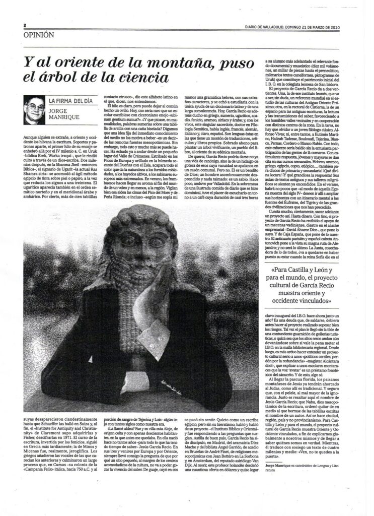 Artículo de opinión firmado por Jorge Manrique sobre la importancia del Instituto Bíblico y Oriental. Apareció en el Diario de Valladolid el 21 de Marzo de 2010. Para leerlo, basta con hacer clic en la fotografía para que se amplie.